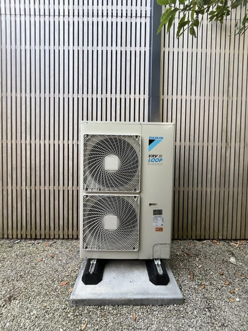 - Un groupe de type VRV Compact (volume de réfrigérant variable) qui adapte sa puissance en fonction de la demande liée à la température des volumes à traiter.
